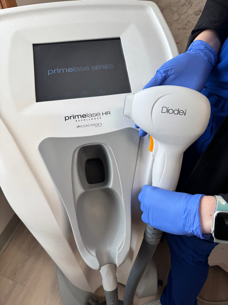 We use the Primelase HR Excellence Diode laser hair device. This LHR treatment is considered best in class for hair reduction technology and can be used on all skin types, unlike traditional IPL devices.