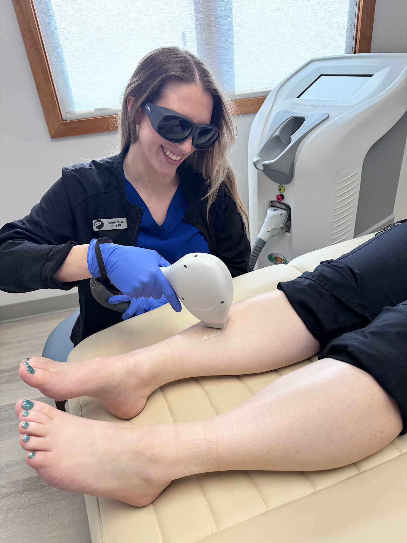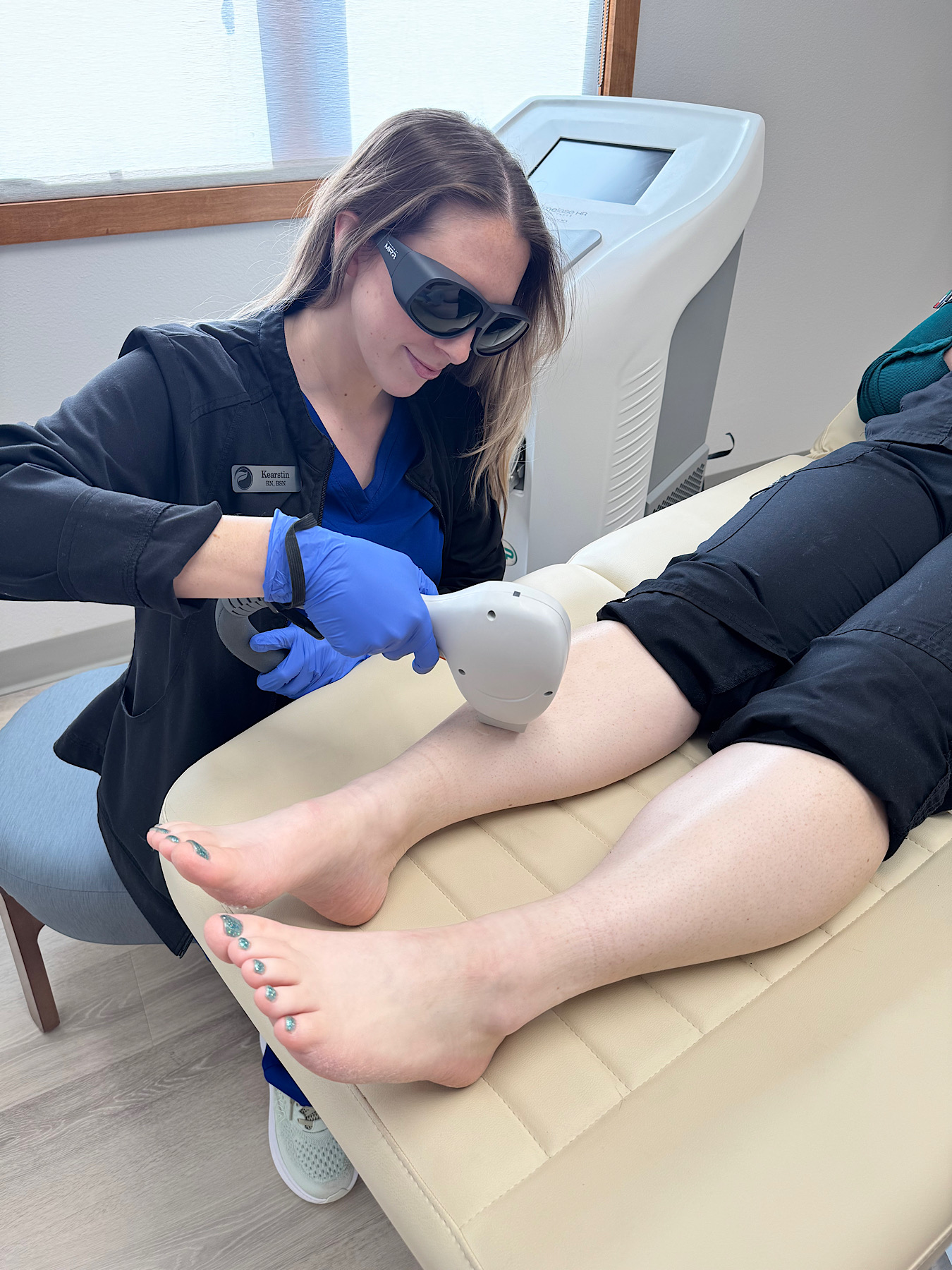 Before treatment, your provider will clean the treatment area and apply a cool gel. This will protect the surface of the skin from the thermal energy of the laser treatment. Before treatment begins, we will give you eye shields to protect your eyes from the laser.